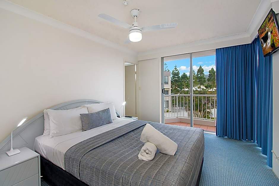 These apartments, located on the low floors of the building, features a balcony with ocean views. It features a fully equipped kitchen with dishwasher, microwave-oven, hot plate and full-size refrigerator and a dining area. Free in-room WiFi is available. The living area has a flat-screen TV with cable channels and DVD player. There are also internal laundry facilities. These apartments feature an en-suite walk-in shower in the master bedroom. Please note the 3rd guest can be accommodated on a rollaway bed/mattress with bed linen at an additional charge (upon request only).